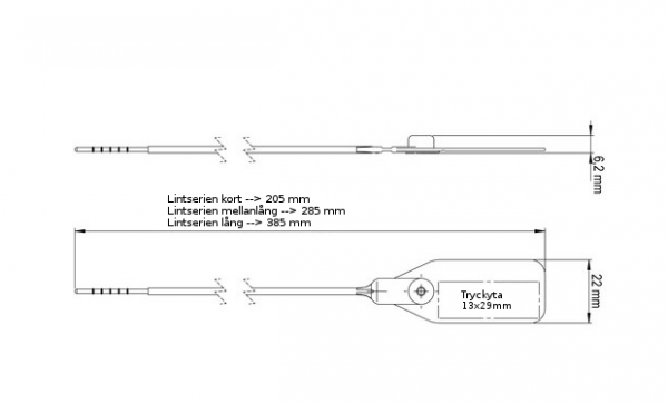Längden kan vara kort(12cm svans), mellanlång(20cm svans) eller lång(30cm svans). Färgvalen är röd, blå grön, gul, orange eller vit. Valfri logga eller text, Individuell numrering med upp till 8 siffror och streckkod är valbart.